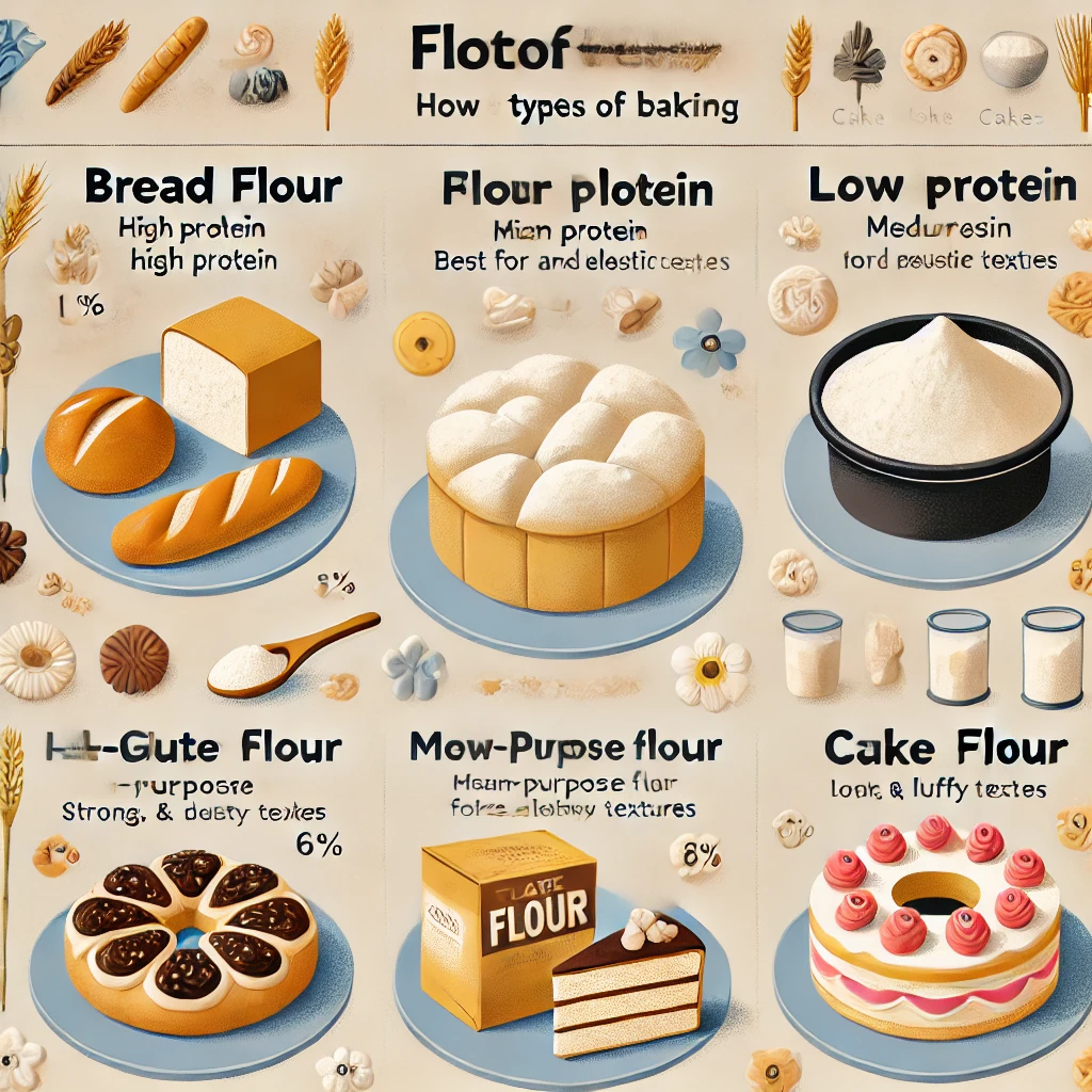 밀가루의 단백질 함량은 글루텐 형성에 중요한 역할을 하며, 이는 베이킹 제품의 질감을 결정합니다.
