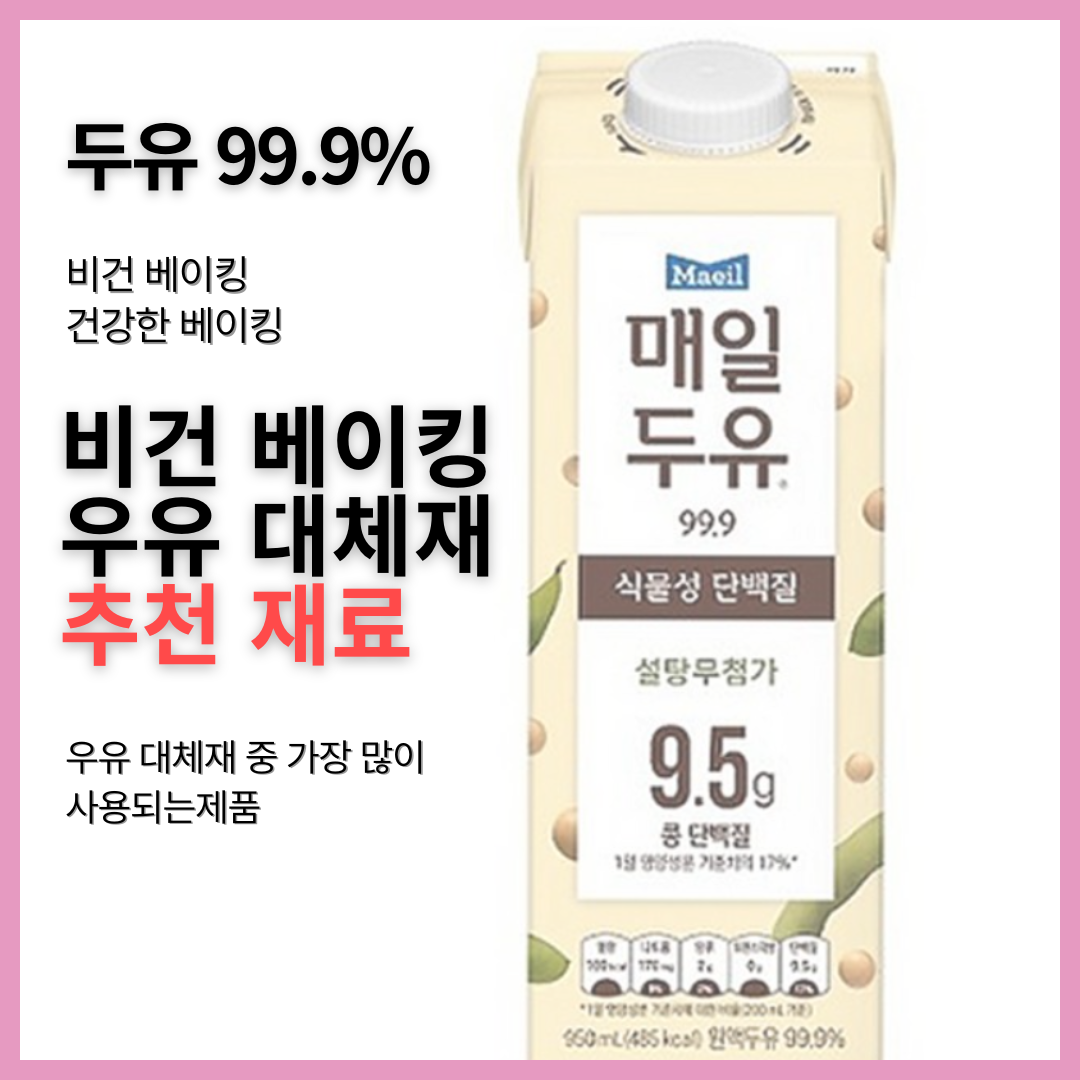 비건 베이킹을 자주 하신다면, 매일두유 99.9%를 몇 팩 사서 냉장고에 두고 사용해보세요.
