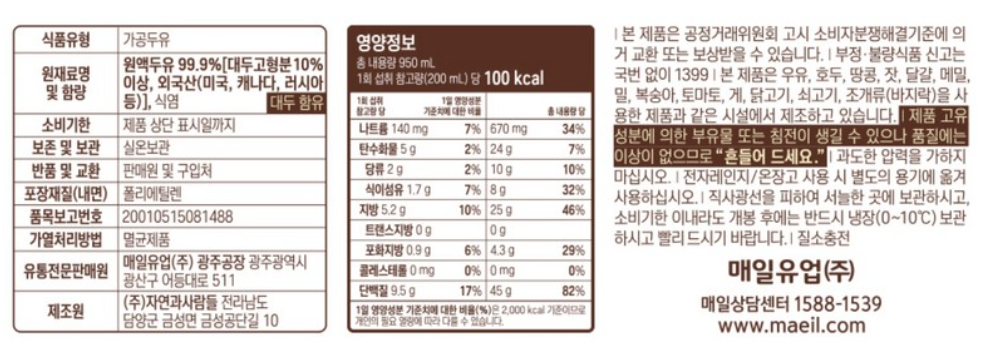 매일 두유 제품 성분표