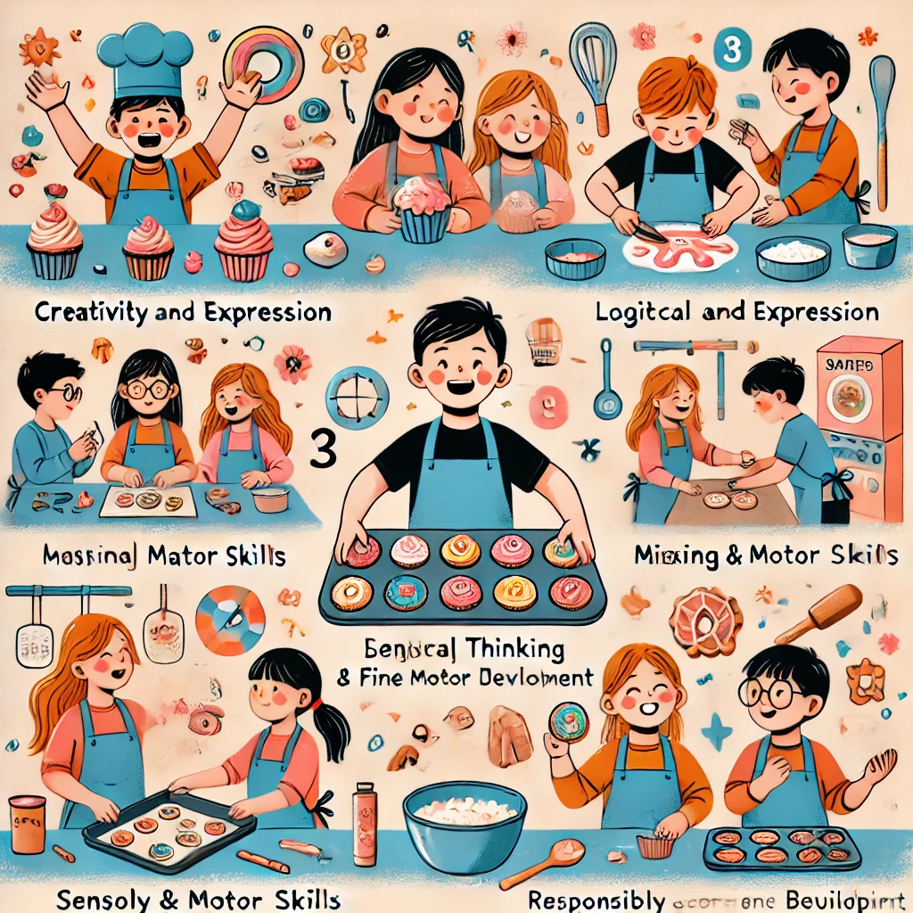- 팀워크 학습 – 친구나 가족과 함께 역할을 나누어 베이킹을 진행하며 협동하는 법을 배웁니다.