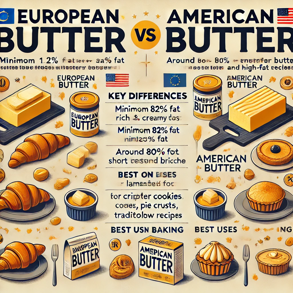 ✅ 유럽식 버터는 지방 함량이 높고 풍미가 깊으며, 미국식 버터는 가벼운 맛과 단단한 질감이 특징입니다.